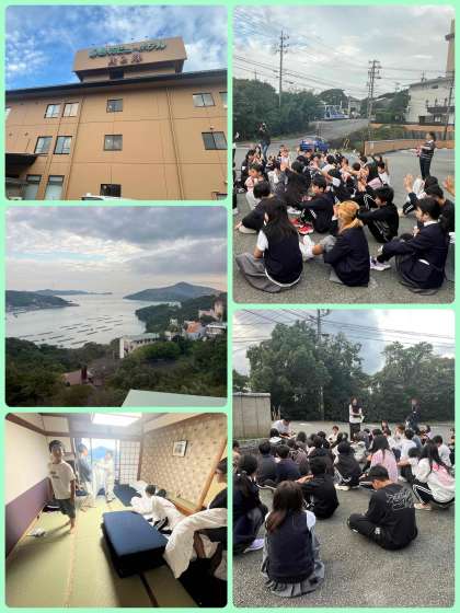 さわやかな朝です。少し晴れ間も見え涼しく過ごしやすい気候です。子ども達は、眠そうにしながらも、朝から協力して布団の片付け、荷物整理を終えて朝の集いに5分前集合できていました。朝の健康観察では全員元気です。2日目もたくさん楽しい思い出をつくって欲しいです。