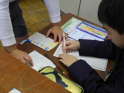 4年生では、はがきの書き方を学習しました。この時期、クリスマスカードや年賀状を送るのに、いい機会です。子どもたちそれぞれが、送る相手のことを考えながら、ていねいに書いたり色を塗ったりしていました。