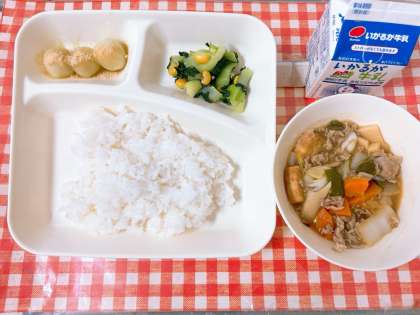今日の献立は、学校給食献立コンクール最優秀賞作品で選ばれたものです。ジャージャンどうふは、「家常豆腐」と書き、中国の家庭で常によく食べられている豆腐料理です。給食では、厚揚げ豆腐と豚肉、野菜がたくさん入っていました。