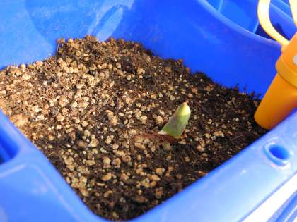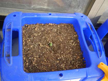 1年生が植えた、チューリップの球根の芽が少し出てきました。