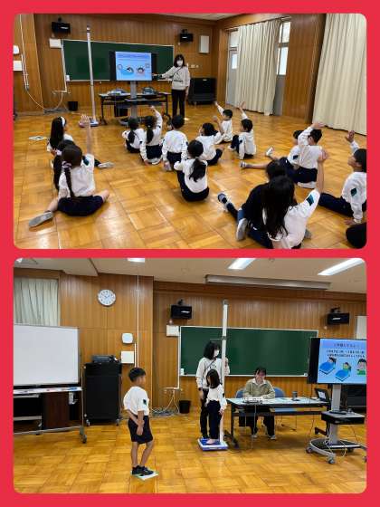 測定前に「早寝早起き朝ごはん」の保健指導をしました。