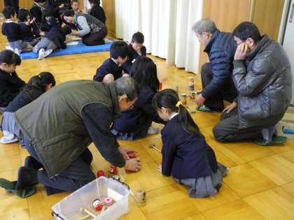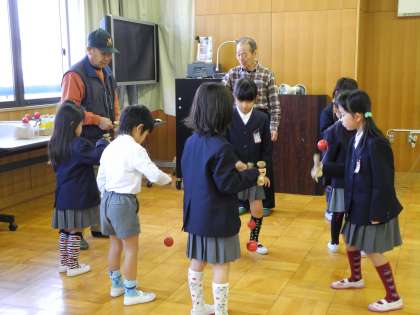 けん玉、だるまおとし、お手玉の活動の様子です。