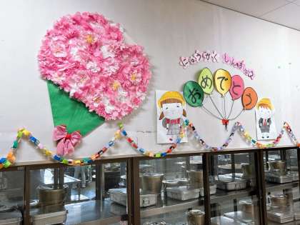 1年生は、今日から自分たちだけで給食当番をがんばっています。6年生のお兄さん・お姉さんに教えてもらったことを、しっかりとやっていました。