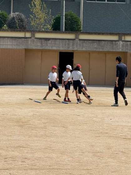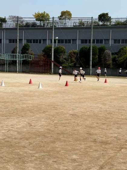 5時間目は5年生が運動場で「体ほぐし運動」をしていました。