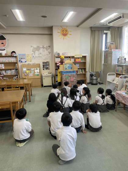 図書館司書の東野先生が、図書の時間に紙芝居を読んでくれます。みんなこの時間が大好きで楽しんでいます。
