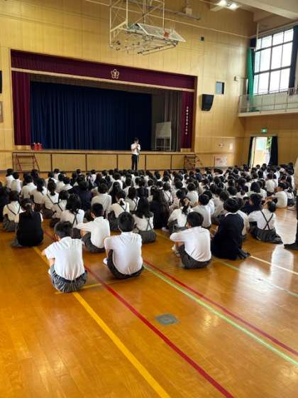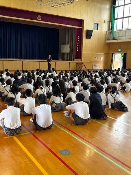 校長先生からは、相手の気持ちを考えて、言葉や行動をするようにお話されました。また、「困ったことや悩んでいることがあれば、茨田小学校の先生は話を聞きますよ」と声かけされました。