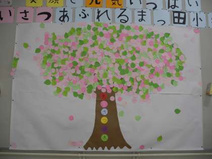 先週は、あいさつ週間でした。月曜日は、木だけで何もついていなかったのに、一週間であいさつの木にはこんなに実と葉っぱを付けました。しっかりとあいさつができたということです。これからも元気なあいさつを続けてほしいです。