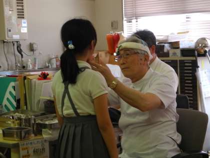 校医さんに、耳や鼻、喉に異常がないか調べてもらいました。