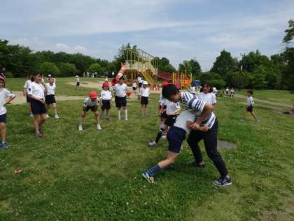 残念なことに遊具がすべて修理中で使えませんでしたが、野原でおにごっこや相撲をして元気に遊ぶことができました。