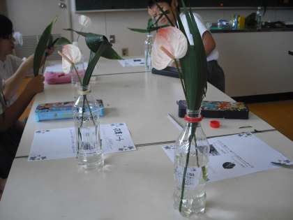 ハランの葉は丈夫で、切れ目を入れたり結んだり、いろいろ工夫できます。