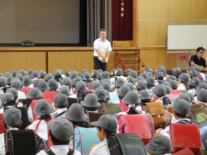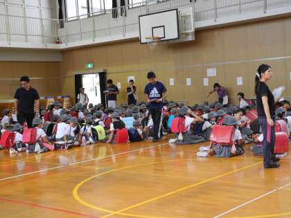 本日、本校では台風を想定した避難訓練と集団下校を実施しました。