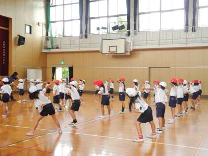 団体演技の練習の様子です。