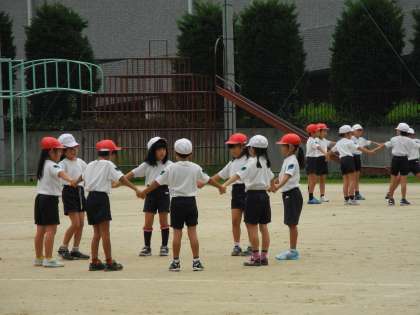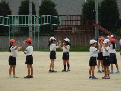 2年生は、運動場で団体演技の練習をしました。今日は、曇りで過ごしやすい気温だったのでよかったです。だんだんと仕上がってきています。