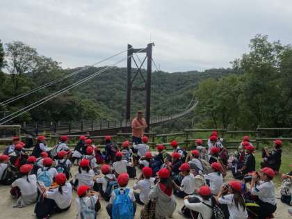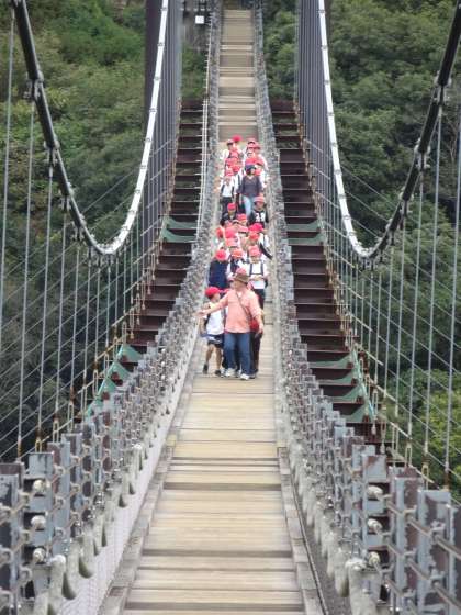 10月14日(金)5年生は秋の遠足で、交野市にある「府民の森 ほしだ園地」へ行ってきました。約2時間ほどの山登りで子どもたちも疲れているようでしたが、吊り橋「星のブランコ」を渡る時には、疲れも吹き飛び、おおはしゃぎでした。