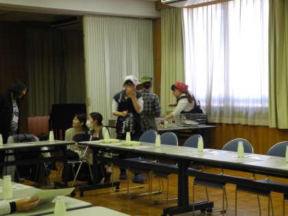 今日、給食試食会が行われました。PTA給食委員とボランティア委員の方々が準備をされました。献立は、さごしのおろしじょうゆかけ、けんちん汁、白菜のおひたし、ごはん、牛乳でした。