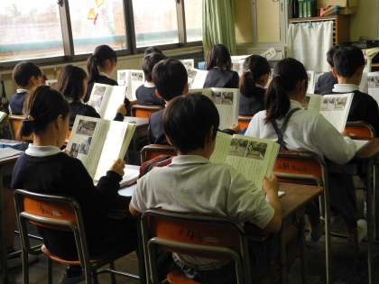 単元名は、「はたらく犬について調べ、リーフレットを作ろう」で、題名「もうどう犬の訓練」を学習しました。