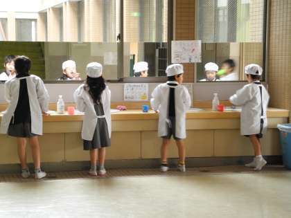 給食後には、「しゃかしゃかしゅっしゅっ〜♪」はみがきソングに合わせて、楽しそうに歯をみがく児童の姿が見られました。