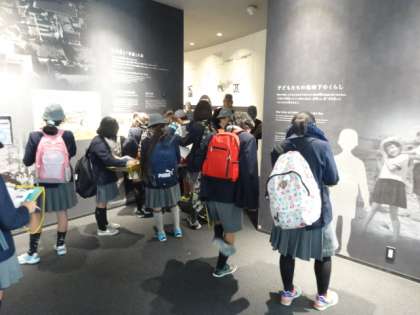 ピース大阪では、大阪の空襲の様子を見学しました。防空壕の中に入れる体験の所では、薄暗い空間の中に人々の叫ぶ声や爆弾の音などが再現され、当時の人はこんなに怖い思いをしていたんだと感じていました。