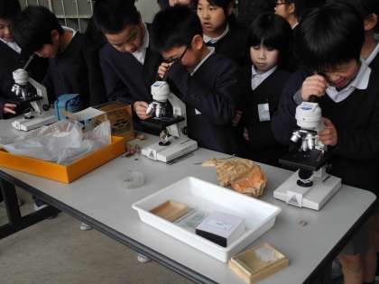 自然クラブでは、水中生物や植物を双眼実体顕微鏡で観察しました。子どもたちは興味を持ち、楽しそうにしていました。