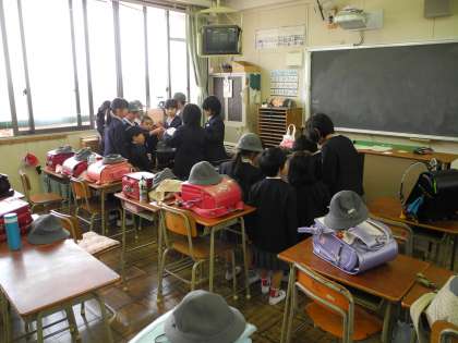 班長が中心になって、新しい班名簿の確認と登下校の反省をしました。それから、集団下校をしました。毎日、なかよく安全に登下校してほしいです。