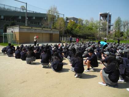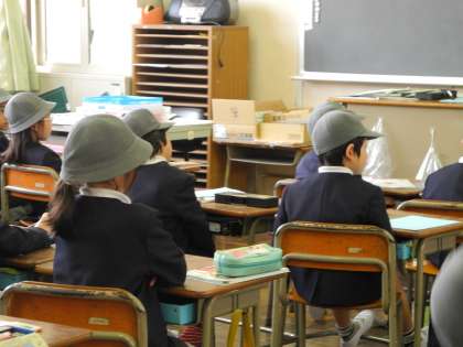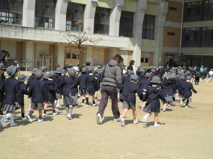 児童は、放送の指示をよく聞いて運動場へ避難し、そのあと校舎へ避難しました。