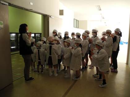 しばらくの間、6年生が1年生の給食の運搬や配膳を手伝います。6年生は、1年生に優しく手伝っていました。