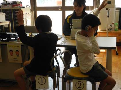 小さな音が聞こえたら、手をあげて検査をする先生に知らせました。また、順番を待っている子どもたちは、静かに待っていました。
