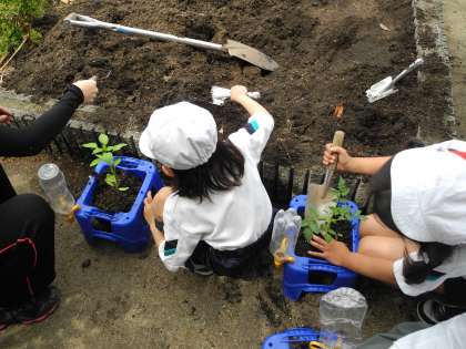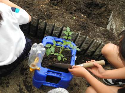 野菜の種類は、子どもが自分で決めました。ミニトマト、枝豆、ピーマン、なす、オクラの5種類です。毎日しっかりお世話をして、おいしい野菜ができるといいな!