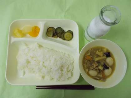 【ごはん・牛乳・八宝菜・きゅうりの中華あえ・ミックスフルーツ(缶)】