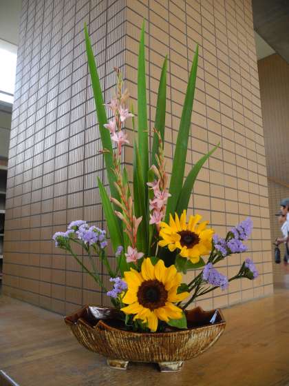 ひまわりの黄色がきれいに映えていて、玄関が明るくなりました。