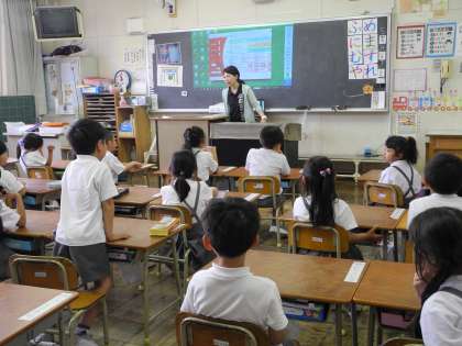 毎週水曜日は、15分間の英語活動をしています。リスニングをしながら、アルファベットを発音したり歌を歌ったりして活動しています。