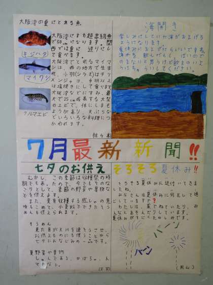 新聞委員会の子どもたちが、毎月新聞を作って、校内の壁に掲示しています。