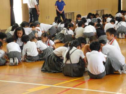 今朝の児童集会は、土曜日の「まったまつり」に向けての話し合いをしました。