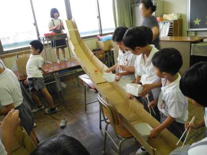 4年1組の「ながしボール」と3年2組の「まちがいさがし」の様子です。