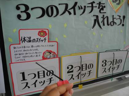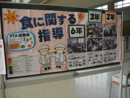 懇談会期間中、玄関のスペースに栄養に関する掲示をしました。