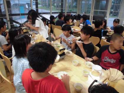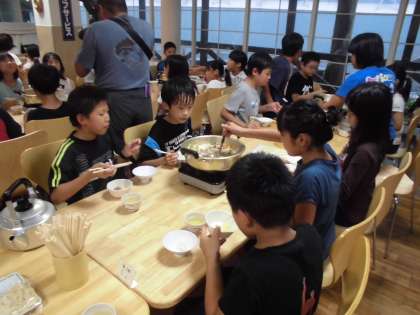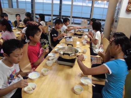 夕食は、かも鍋でした。かもを初めて食べたという子どもが