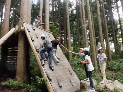 食材カードを見つけ終わった班から、アスレチックで遊びました。