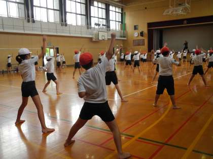 全学年、運動会の団体演技の練習を始めています。