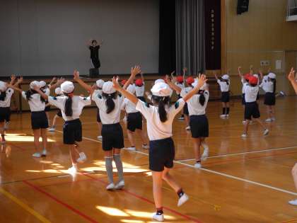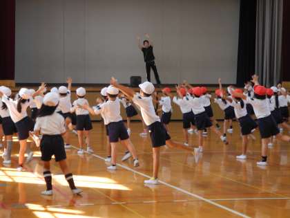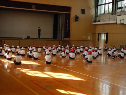 運動会の練習の様子です。先生の話をよく聞いて、練習しました。