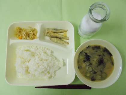 【いわしてんぷら・みそ汁・切り干しだいこんのいため煮・ごはん・牛乳】