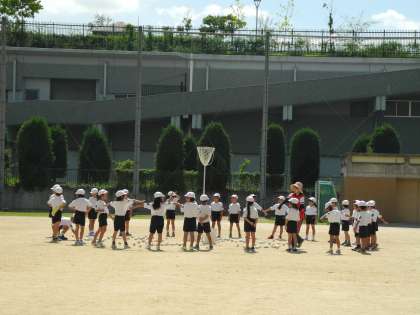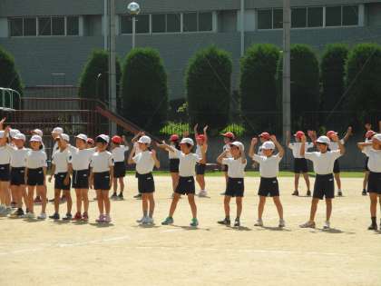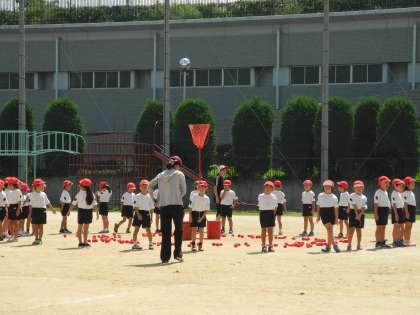 玉入れの前に、ダンスをします。音楽のリズムに合わせて