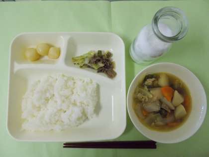 さといもを供える風習があるので、給食でも煮物にさといもを使いました。