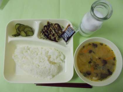 【お好み焼き、豚汁、きゅうりの梅風味、ごはん、牛乳】