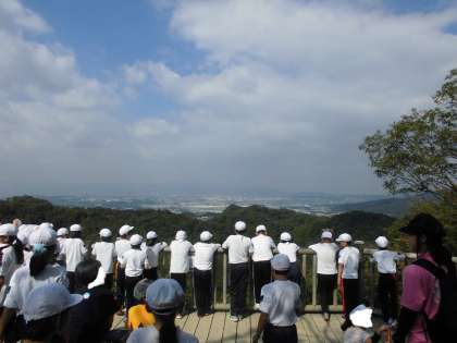 帰る前には展望台に行って山の下を眺めました。枚方パークや京都まで見える景色は素晴らしかったです。