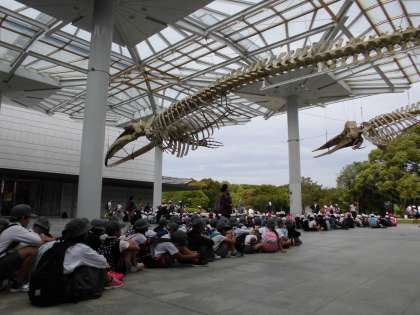 自然史博物館の玄関には「ナガスケ」というナガスクジラの骨が