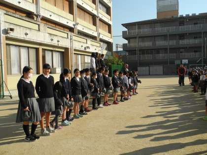 写真は、今朝の児童朝会で校長先生より表彰された様子です。