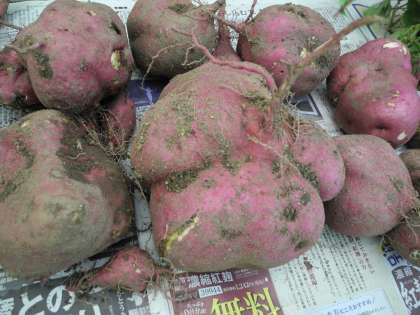 学習園でサツマイモを収穫しました。 土の中から、こんなに大きいサツマイモが出てきました!
