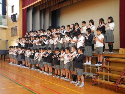 4年生は、学習発表会で群読、リコーダー演奏、合唱をします。