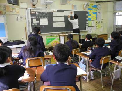 校内の授業研究会で、4年生は算数科の単元「広さを調べよう」を