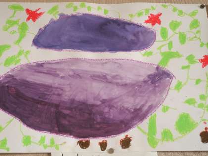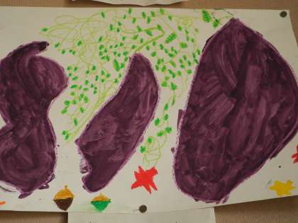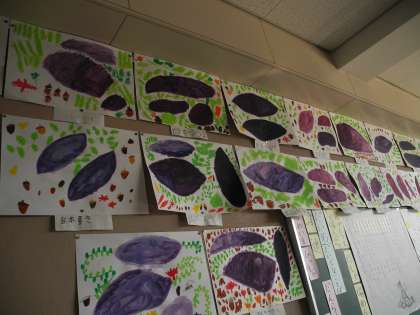 画用紙にどっしりとかかれた大きなさつまいもの絵が教室に掲示